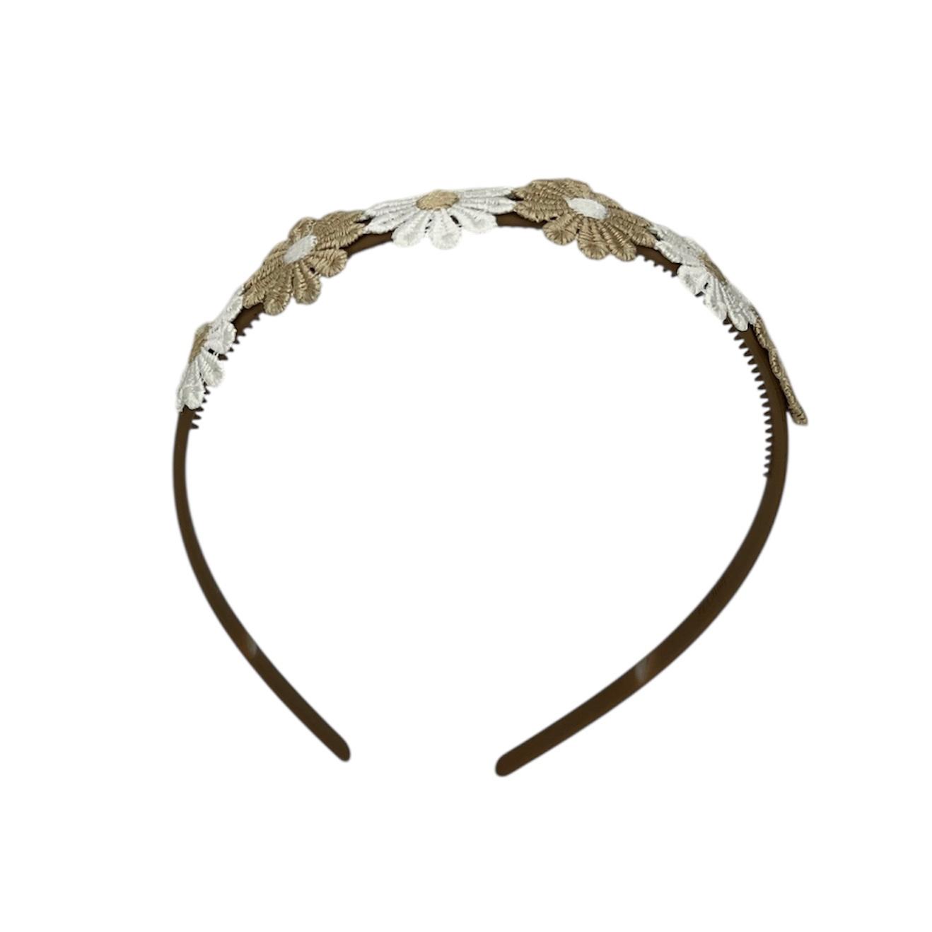 Diadeem - haarband - madeliefjes taupe/wit - bloemen - bloemetjes